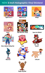 Select from 13 different 3-inch vinyl stickers with colorful holographic borders, featuring fan-favorite characters from your favorite games & cartoons!
