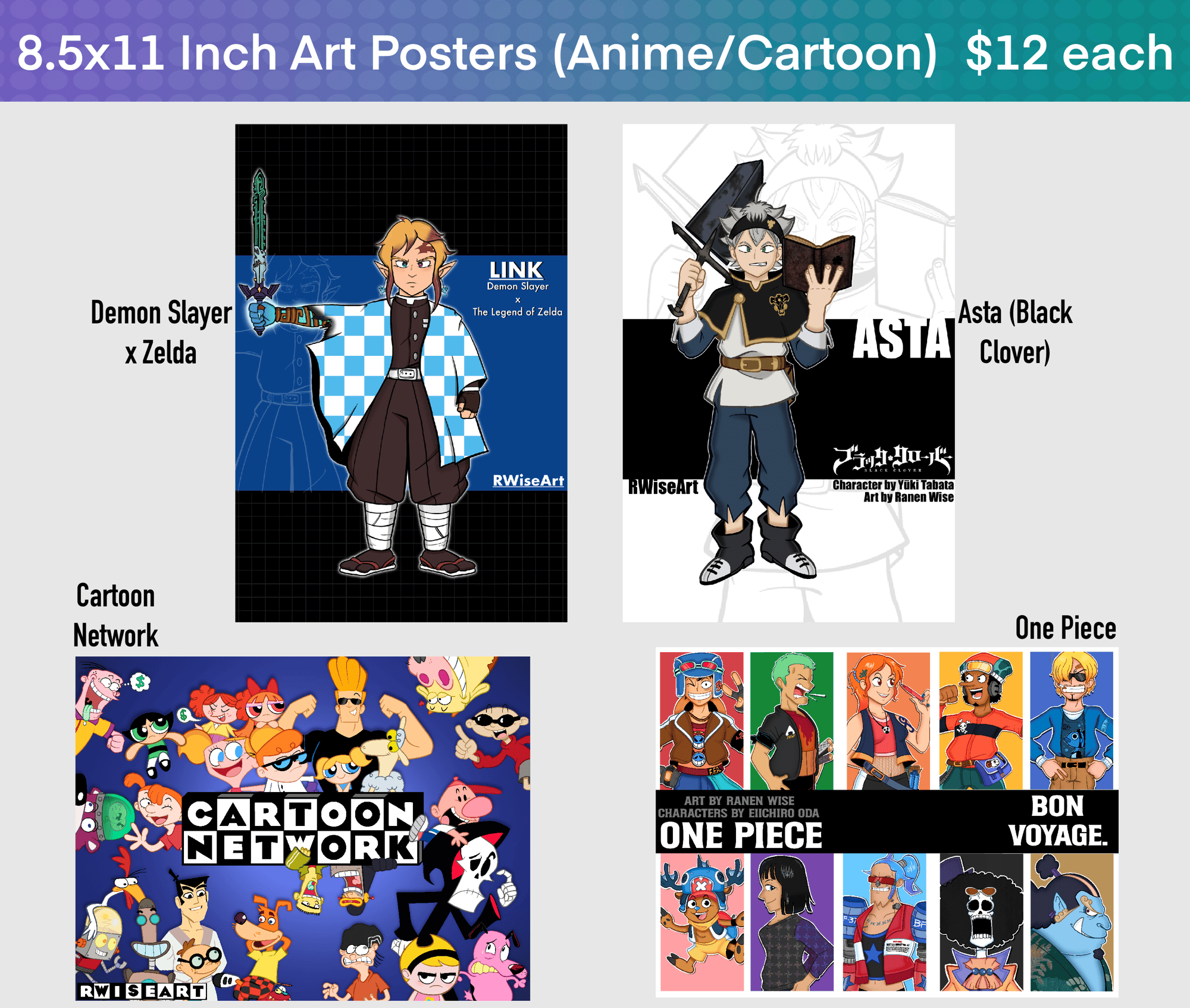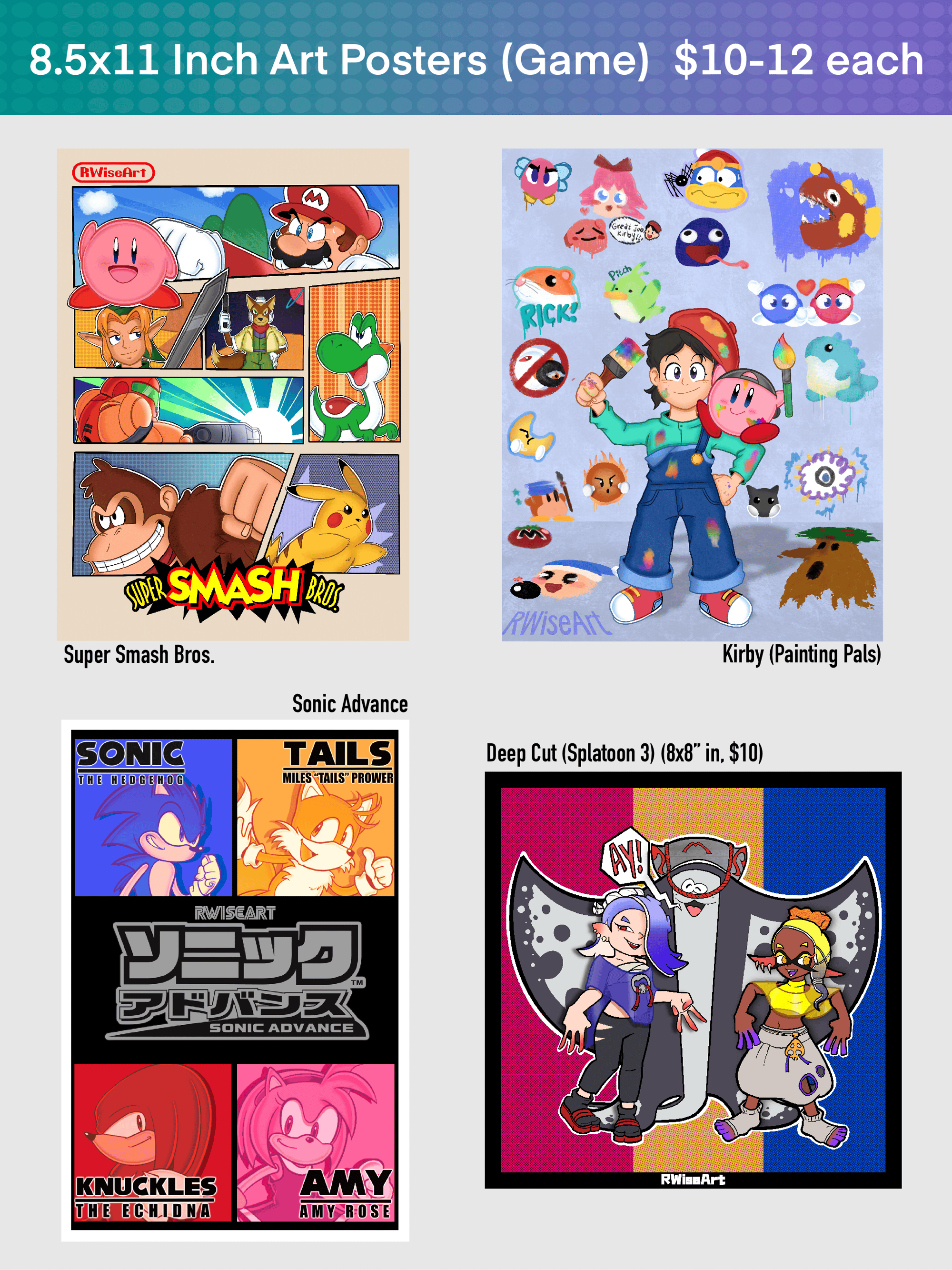 Medium 8.5x11 (and 8x8) inch posters, printed on glossy photo paper!